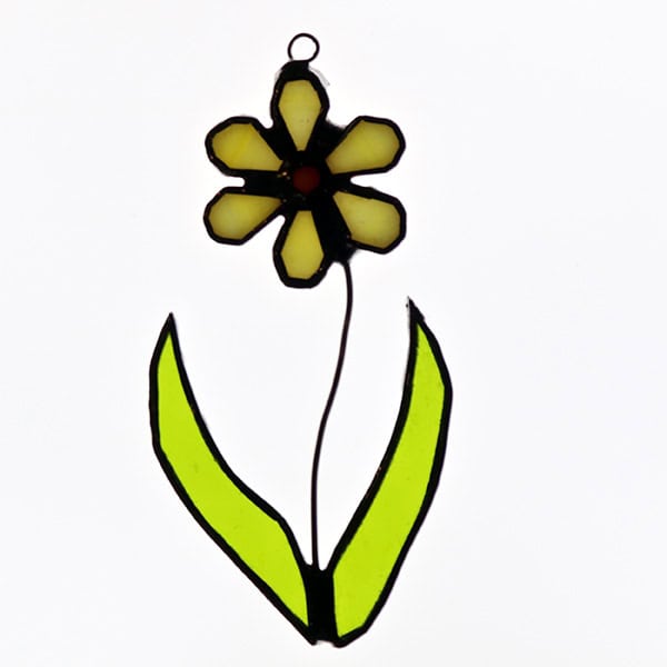 Somerset artist Frances Campbell skilfully combines her mosaic techniques with stained glass to create these beautiful transparent and light-catching pieces by hand. This pretty yellow primrose flower has a little hanging loop incorporated into the top edge. Could be right or left facing.